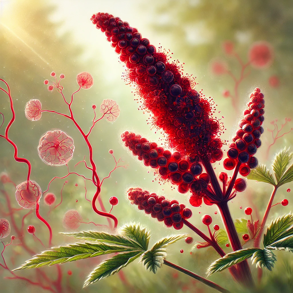La grande pimprenelle, avec ses fleurs rouges sombres et compactes, rappelle des gouttes de sang. Utilisée depuis des siècles pour ses propriétés hémostatiques et circulatoires, elle est un puissant remède contre les saignements et les troubles vasculaires.