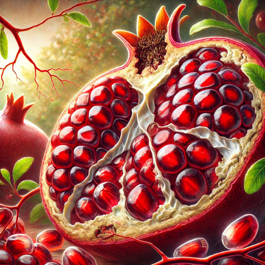La grenade est riche en vitamine C. C'est aussi une source importante d'acide folique et d'antioxydants (polyphénols). Les polyphenols de la grenade sont des tannins (astringent traitement des aphtes)
